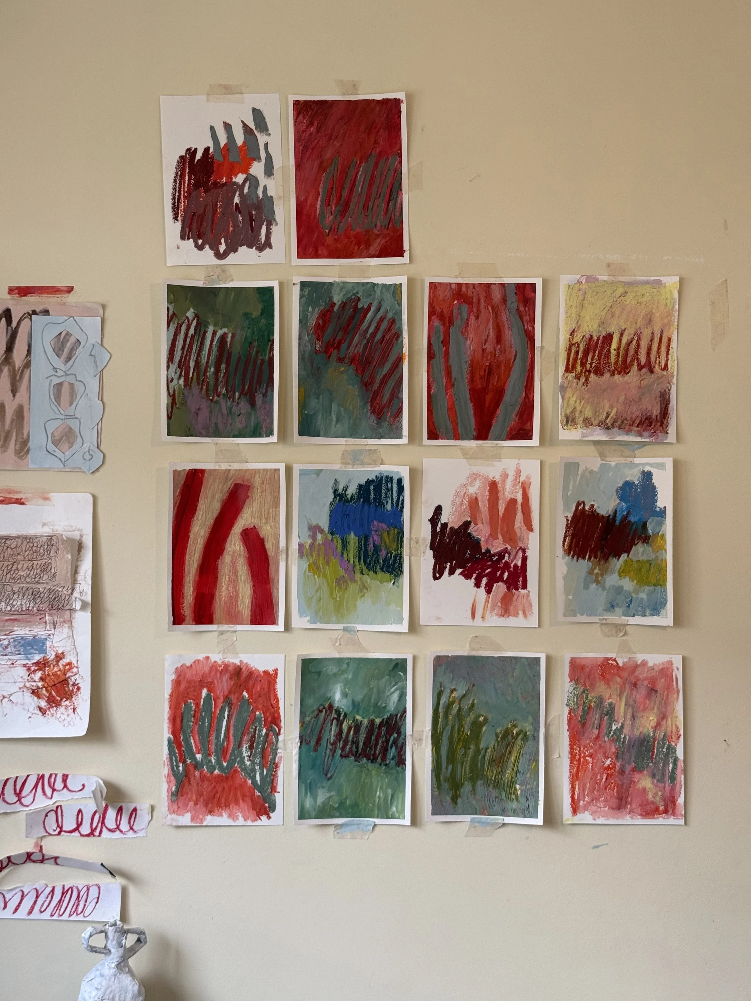 This is an ongoing, mail-based drawing practice. Each month, subscribers receive one exclusive drawing sent directly from my studio. The drawings sit alongside my larger painting practice- quieter, more immediate and made as part of my ongoing emotional and conceptual exploration. They will follow a three/ six month theme with the intention of direct insight to my practice and collecting an ongoing body of exclusive work.